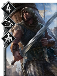 See this subject on The Witcher wiki: Clan Dimun Pirate (gwent card)